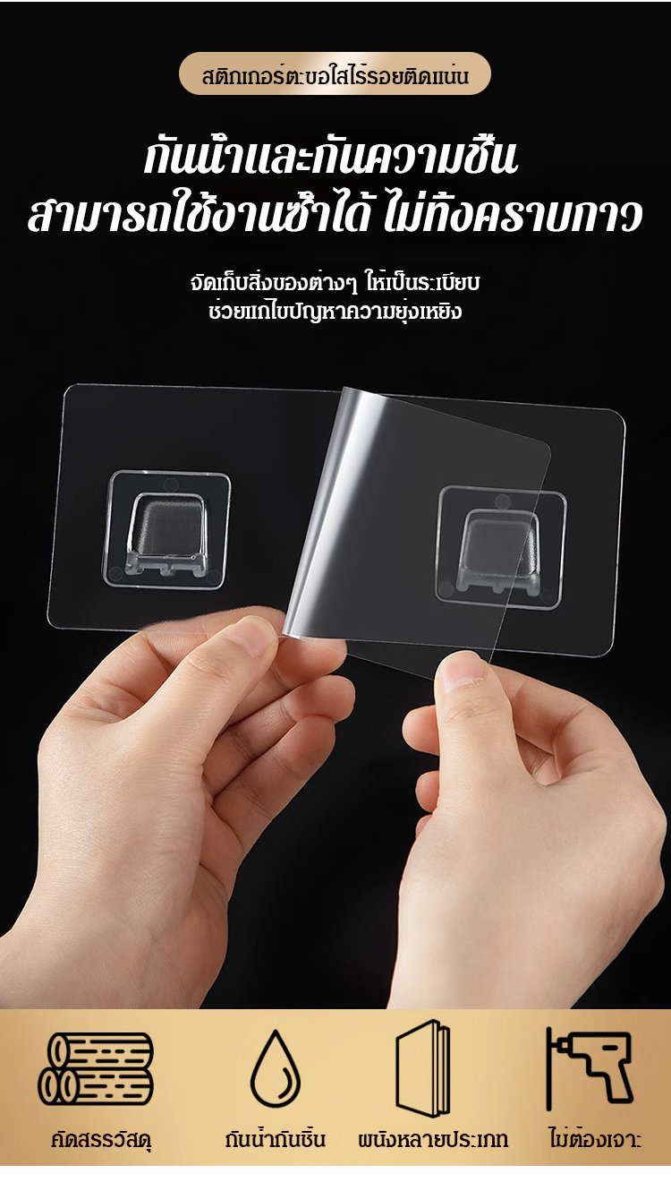 [ไม่หลุดแม้ว่าผนังพัง] สติกเกอร์ตะขอโปร่งใสไร้รอยต่อ